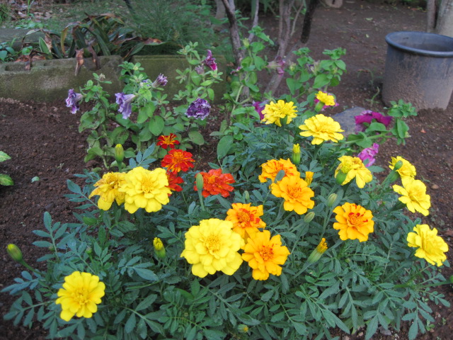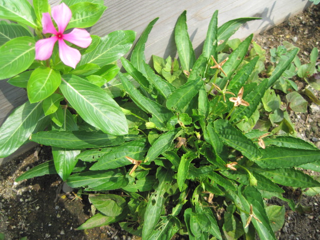 昨日の雷雨で千日紅や初雪草が倒壊
